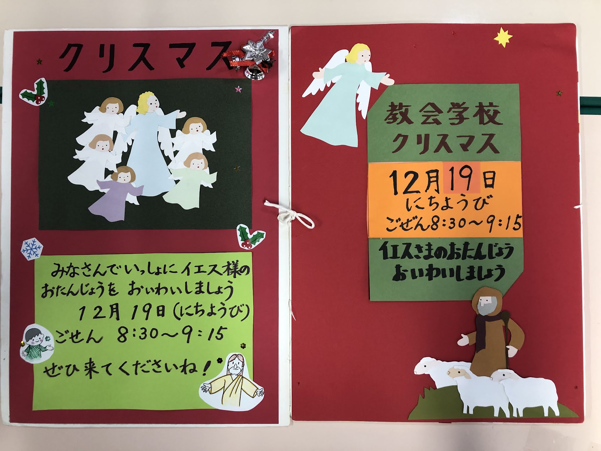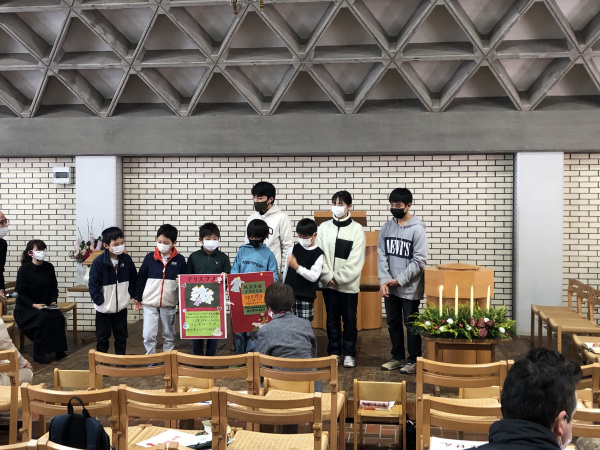 教会学校 【教会学校ブログより】アドベント第1主日 2021.11.28 今日からアドベントに入りました。 今日は,教会学校・小礼拝合同礼拝として大人の方たちと共に礼拝をささげました。今まではデイキャロルとして,礼拝後に教会学校の生徒が讃美をしてきましたが,それは叶いません。また,鎌倉静養館にキャロリングをお届けすることもできません。 今年も,教会学校クリスマスへのお招きを小礼拝にご出席の皆さんにしました。また,鎌倉静養館には寄せ書きのクリスマスカードと,ポインセチアをお届けします。 Post Share 教会学校 【教会学校ブログより】クリスマスの準備が始まりました 【教会学校ブログより】アドベント第3主日 関連記事 【教会学校ブログより】クリスマス 【教会学校ブログより】クリスマスおめでとうございます 受難週の祈り 4月14日(月) アドベント第1主日 【教会学校ブログより】受難週のいのり 4月16日(土) 【教会学校ブログより】アドヴェント第3主日